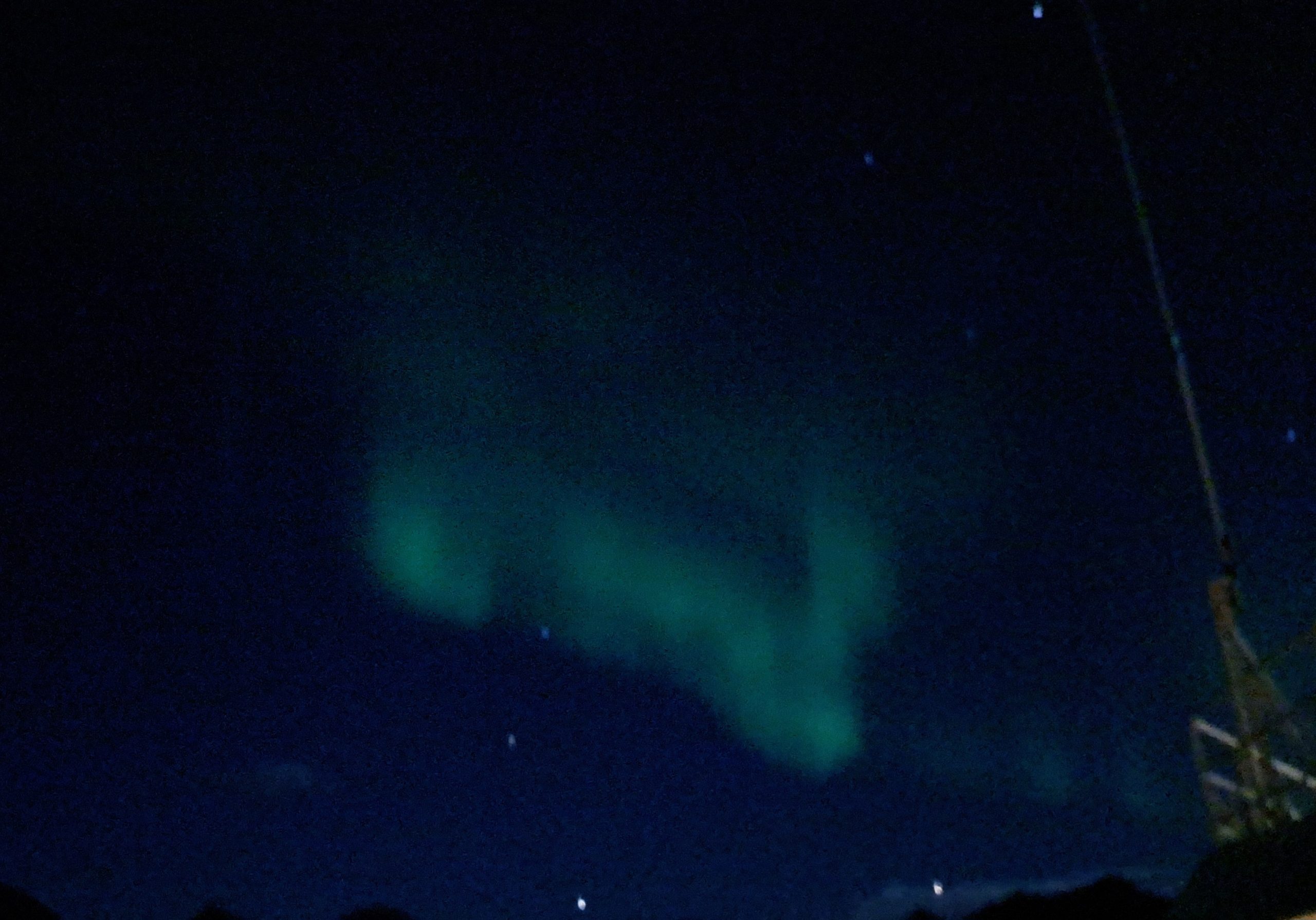 Nach dem Essen sitzen wir gemütich an der Bar, diesemal mit einer Tequila Sunrise für die Bebbin. Dann erschallt der Ruf. „Polarlichter!“ Die Bebbin rennt und knipst, was das Zeug hält.