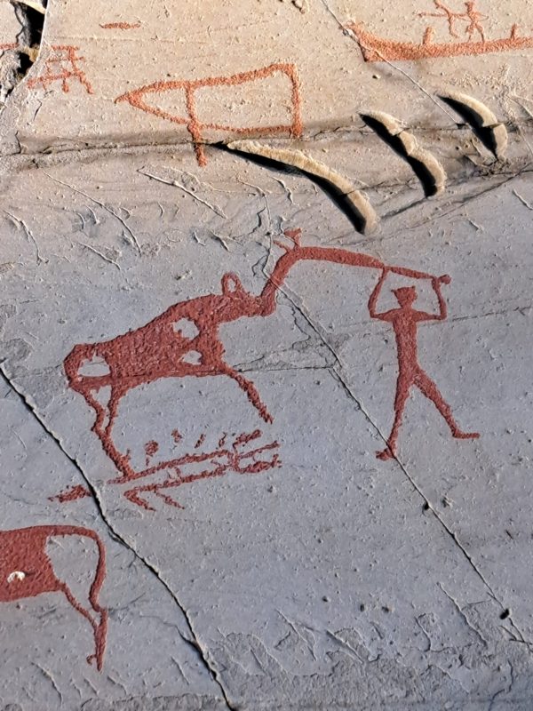Diese Felsenzeichnungen, die in den Fels geritzt wurden, zum Unesco-Weltkulturerbe gehören und hier entdeckt wurden, finden sich auch in Nordschweden und Nordfinnland, also Meilen entfernt, und die aufgefundenen Pfeilspitzen aus Feldspat sind … aus Dänemark. Da damals noch kein Troll auf die Idee gekommen war, Zölle zu errichten, konnten also die Nordnorweger mit dänischer Qualitätsware ihre heimischen Rentiere und Elche erlegen. Die Menscheit kannte die Globalisierung noch lange bevor das Wort dazu erfunden worden war.