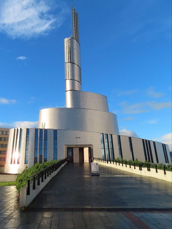 Die Nordlichtkathedrale wurde 2013 erbaut und kostete 200 Millionen norwegische Kronen – drei Mal so viel wie ursprünglich geplant. D.h. 16.2 Millionen Schweizer Franken. Das kommt sowohl dem Meenzer (Stichwort Berliner Flughafen) als auch der Bebbin (ihr seit Jahren im Umbau begriffener Arbeitsort) nicht ganz unbekannt vor.